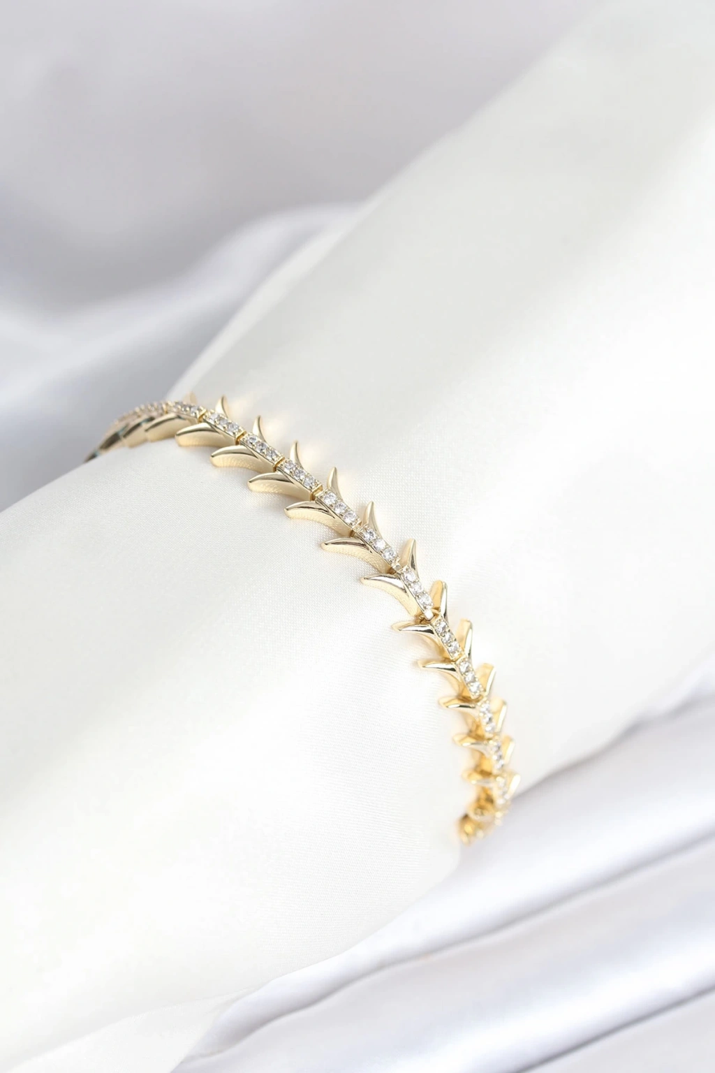 Pirinç Gold Renk Balık Sırtı Model Zirkon Taşlı Kadın Bileklik - TJ-BB8027