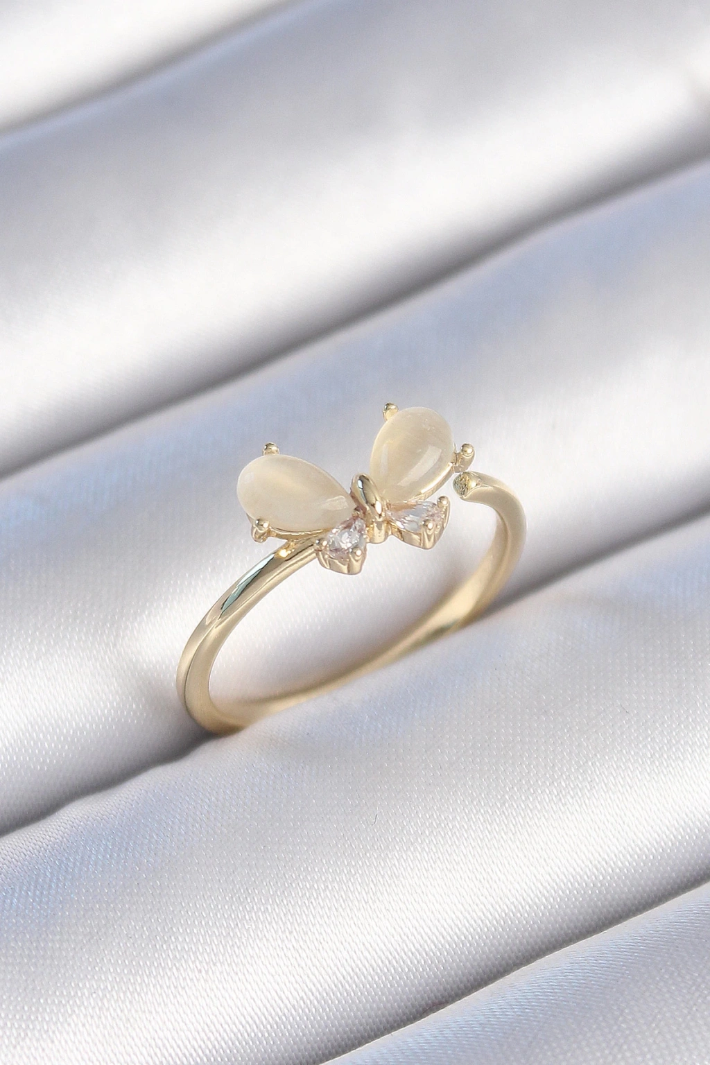Pirinç Gold Renk Beyaz Mineli Zirkon Taşlı Kelebek Model Kadın Yüzük - TJ-BYK3464