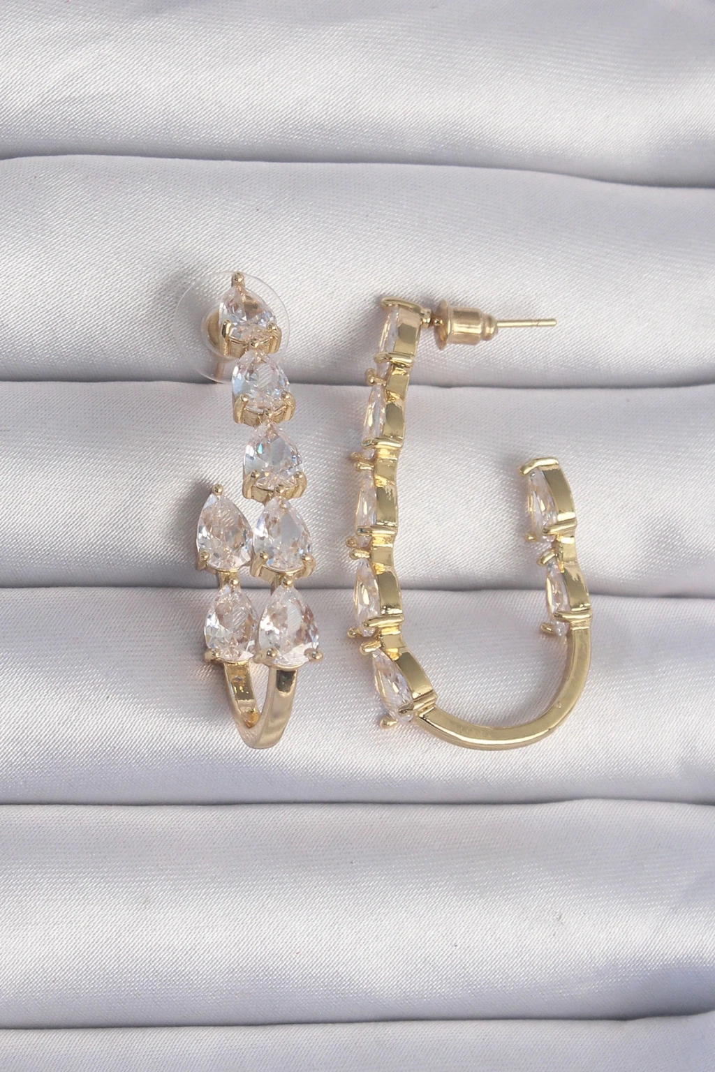 Pirinç Gold Renk Damla Zirkon Taş Tasarımlı Küpe - TJ-BKP9198