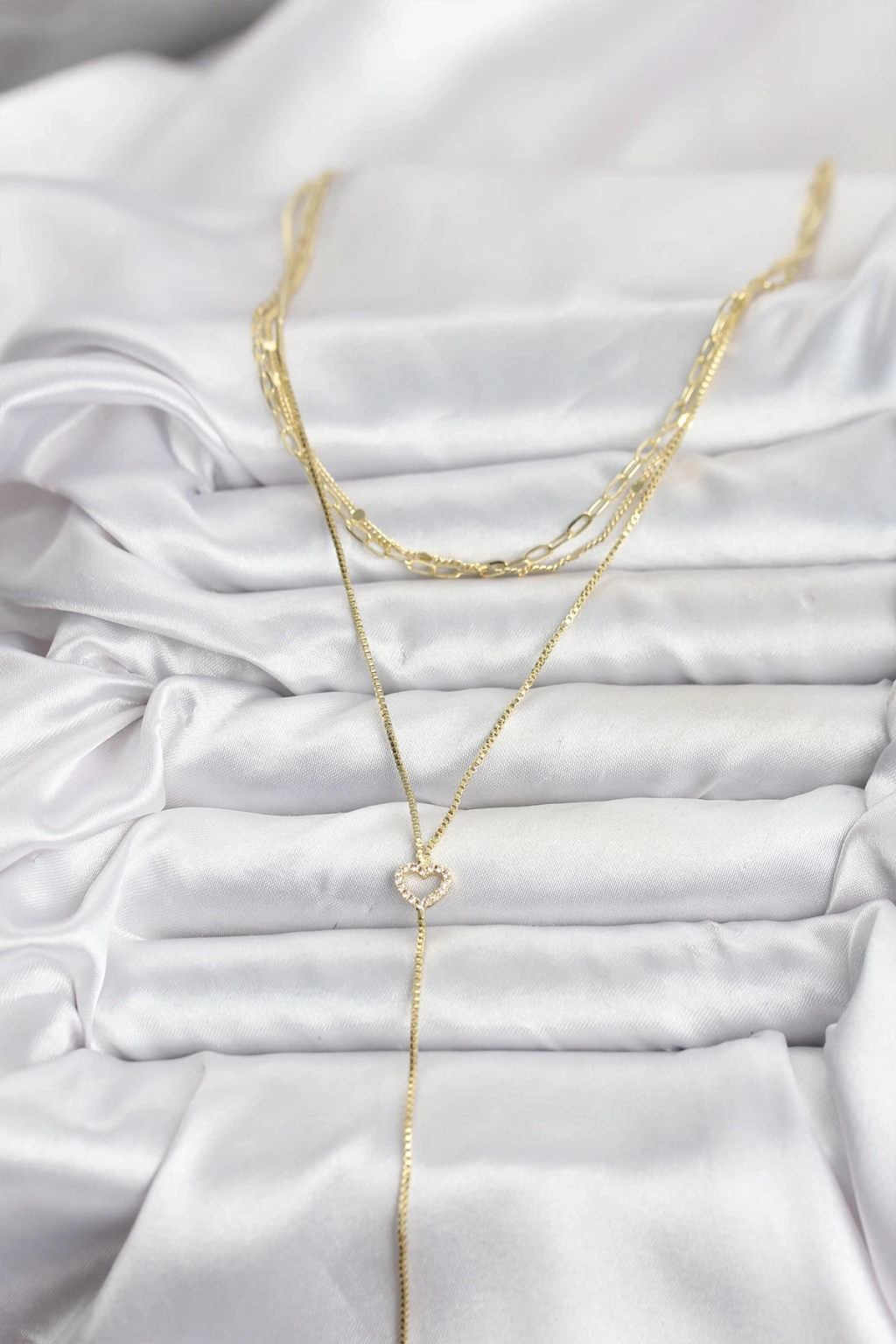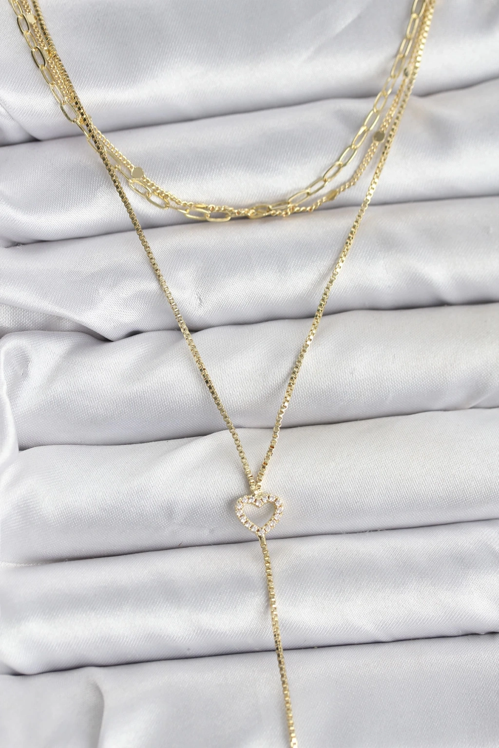 Pirinç Gold Renk Kalp Detaylı 3'lü Kombin Y Kadın Kolye - TJ-BKO10690