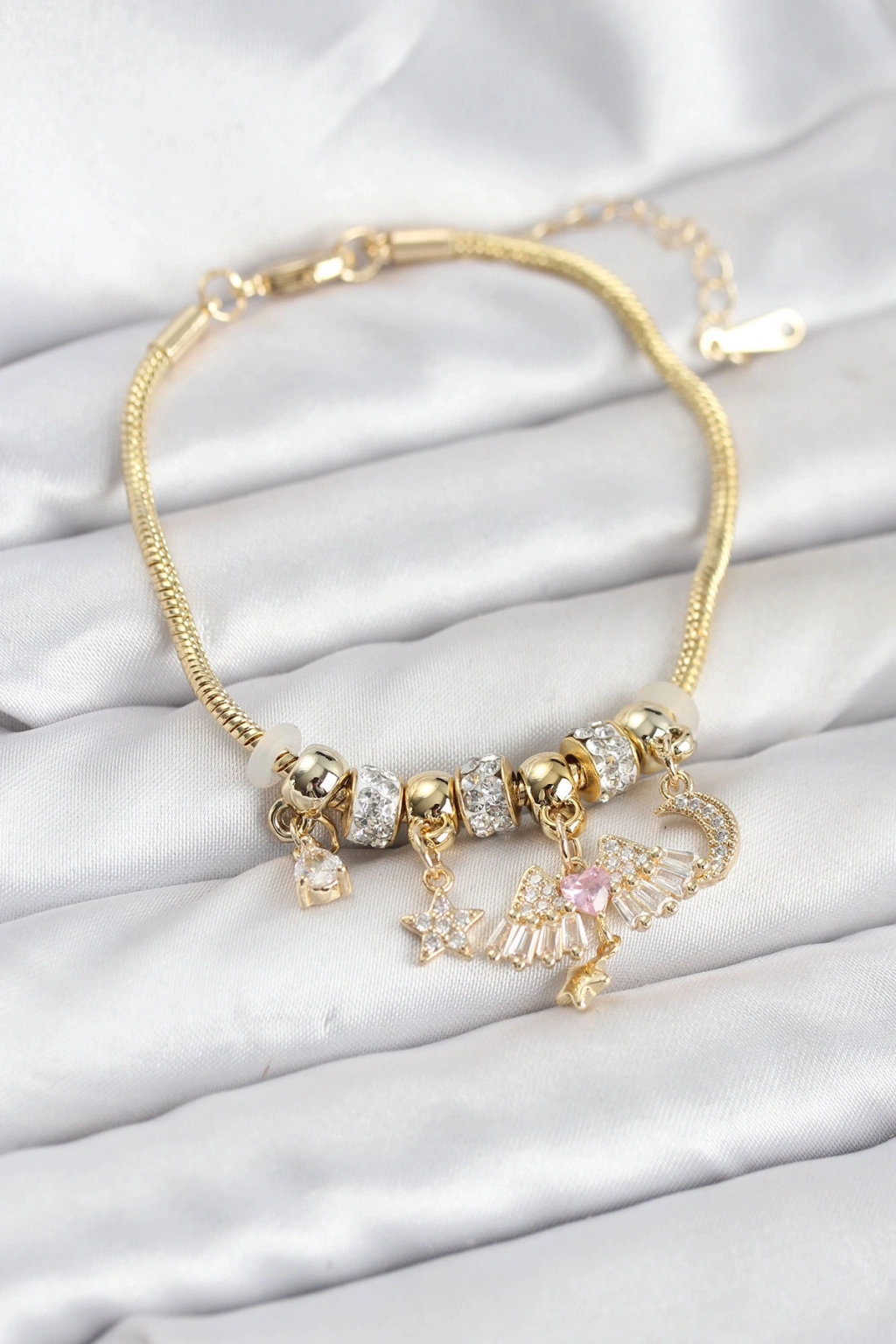 Pirinç Gold Renk Kanatlı Charmlı Kadın Bileklik - TJ-BB8199