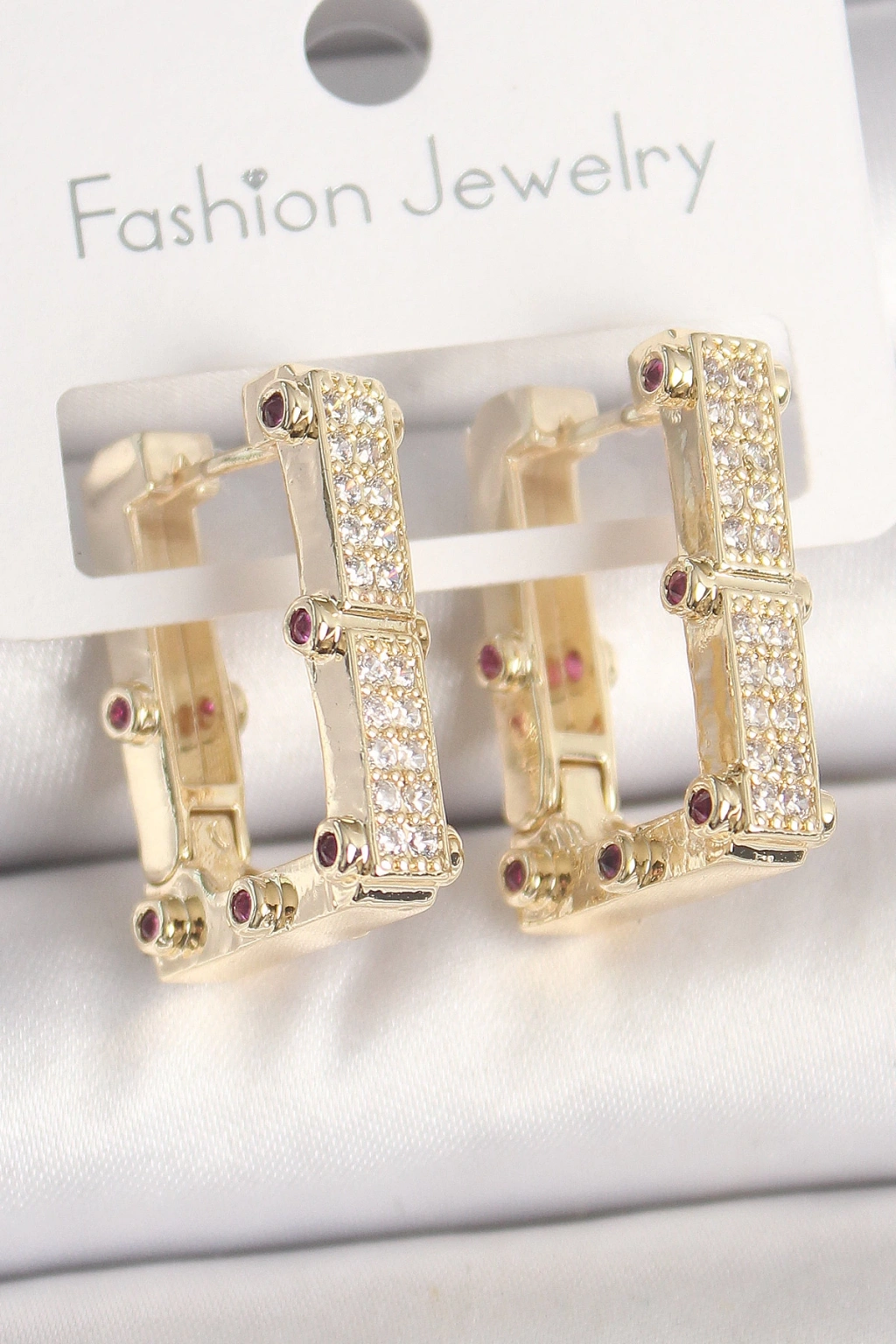 Pirinç Gold Renk Kare Zirkon Taşlı Kadın Küpe - TJ-BKP10373