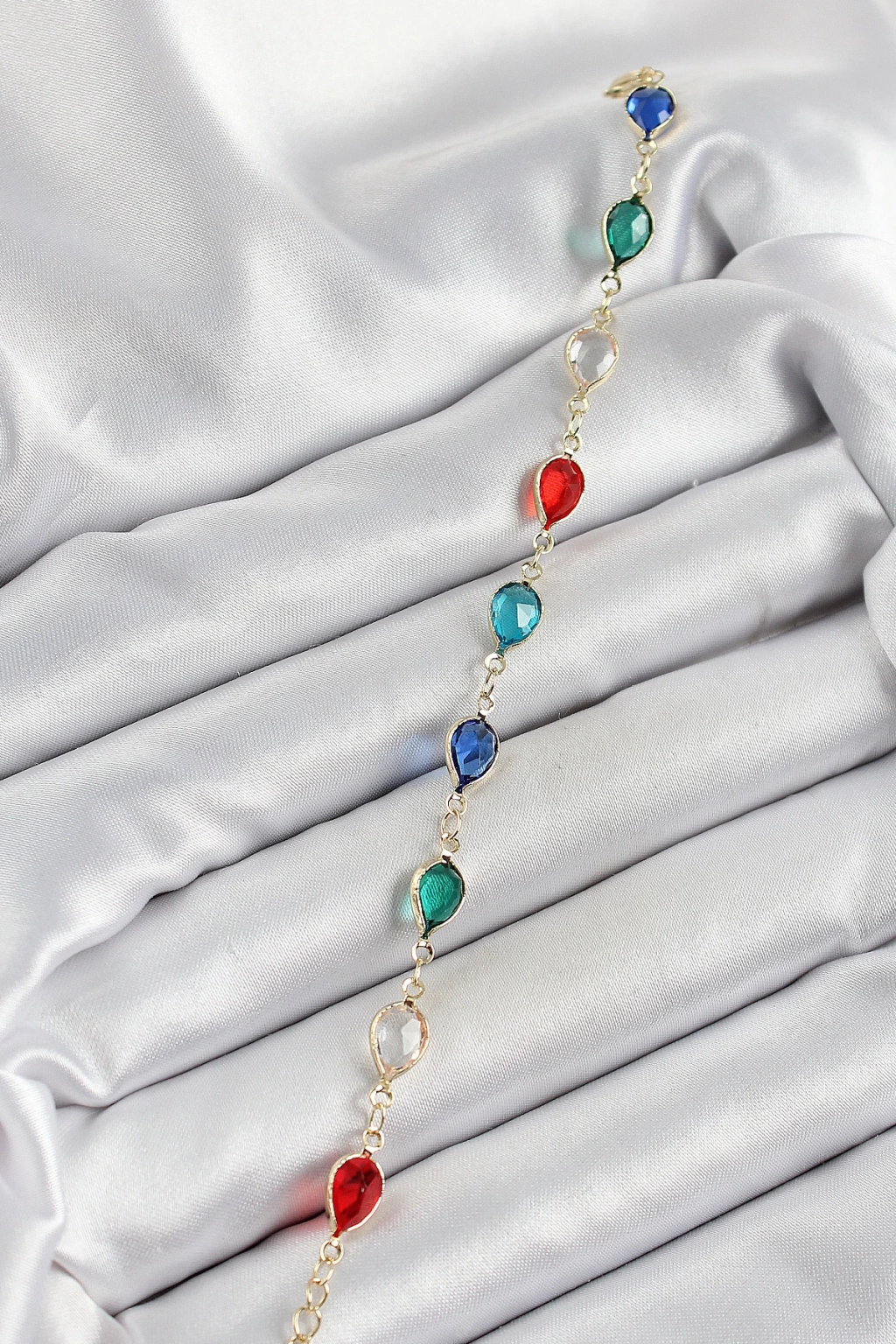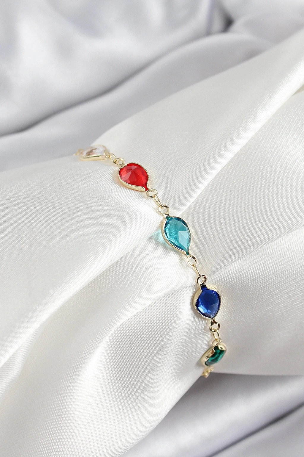 Pirinç Gold Renk Karışık Renk Damla Zirkon Taşlı Kadın Bileklik - TJ-BB7048
