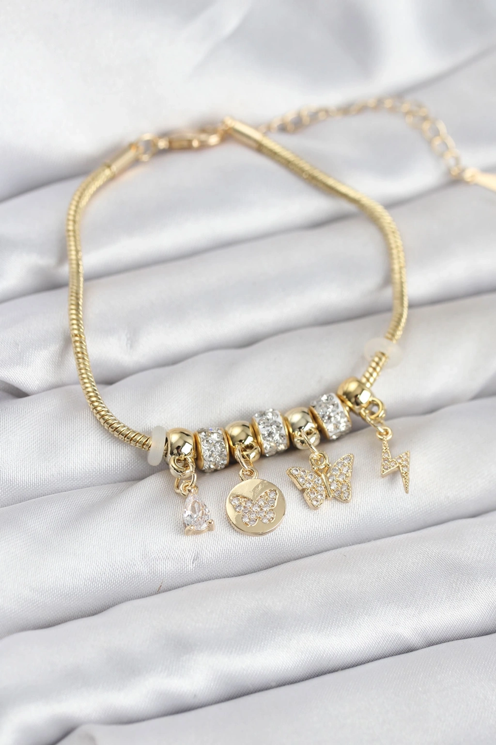 Pirinç Gold Renk Kelebek Charmlı Kadın Bileklik - TJ-BB8193