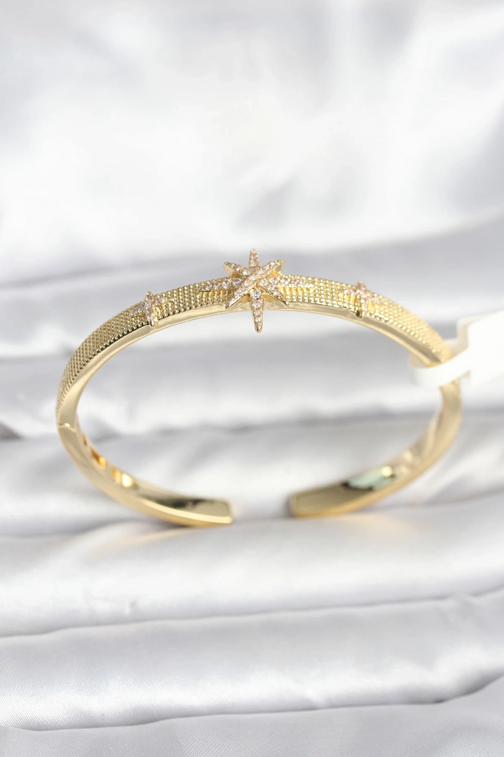 Pirinç Gold Renk Kutup Yıldızı Model Kadın Kelepçe Bileklik - TJ-BB8093