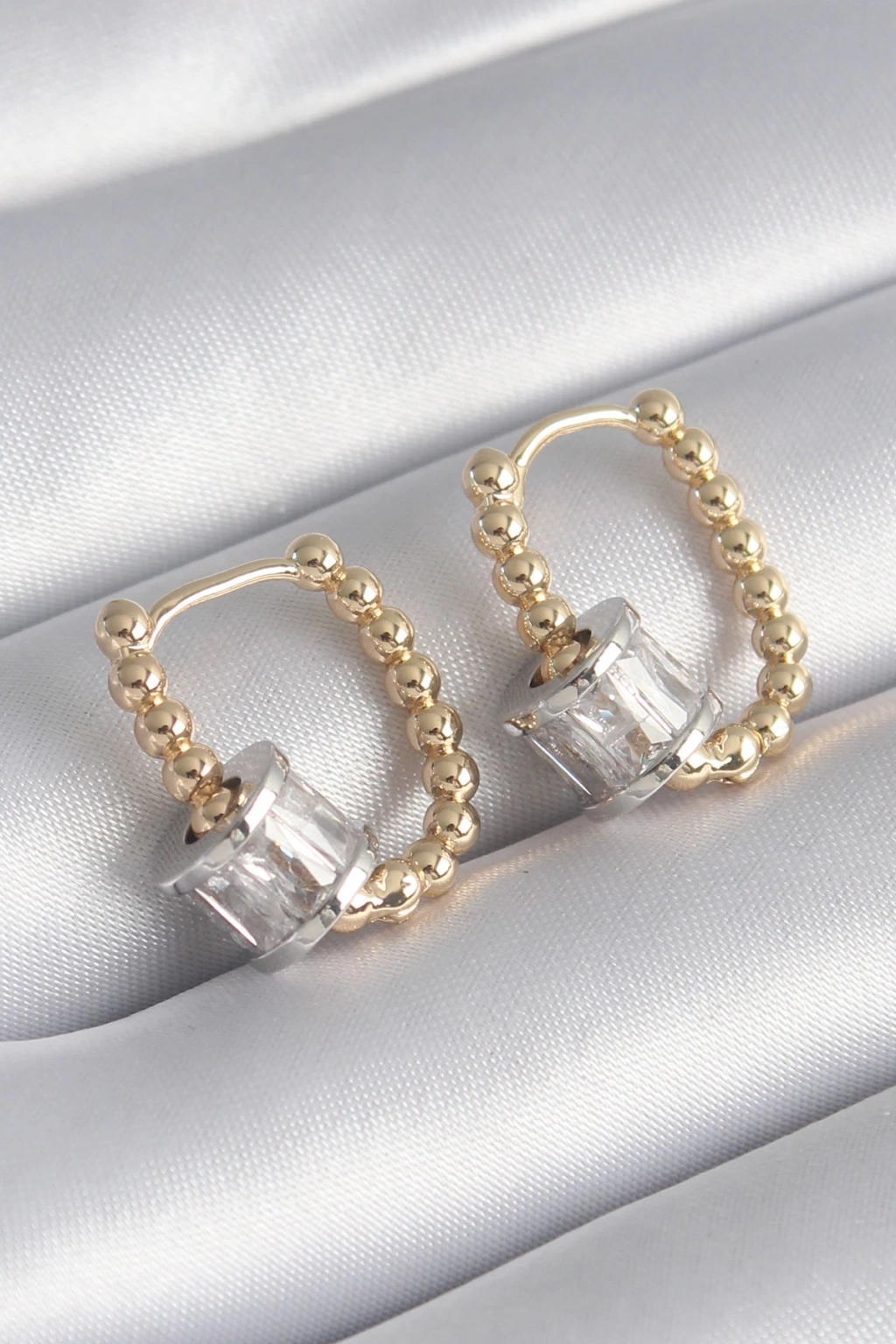 Pirinç Gold Renk Top Model Gümüş Renk Zirkon Taşlı Kadın Küpe - TJ-BKP8495