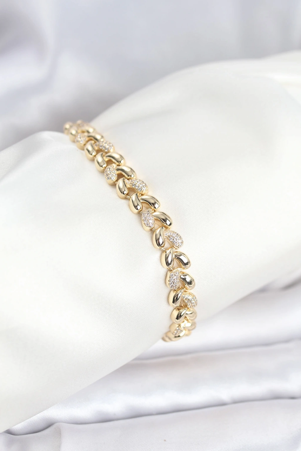 Pirinç Gold Renk VIP Seri Sarmal Damla Model Zirkon Taşlı Kadın Bileklik - TJ-BB8268