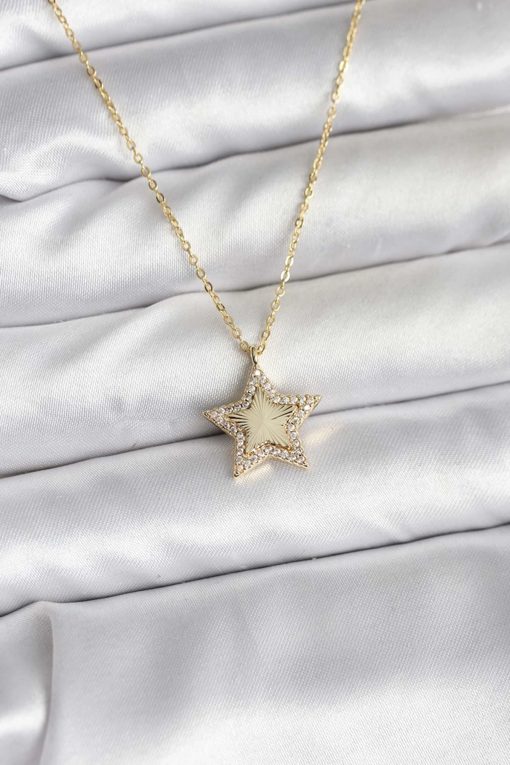 Pirinç Gold Renk Zincirli Yıldızlı Model Kadın Kolye - TJ-BKO10751
