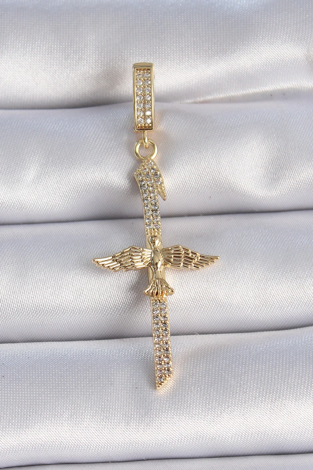 Pirinç Gold Renk Zirkon Taş Detaylı Elif Model Anka Kuşu Figür Ajda Charm - TJ-BC1013