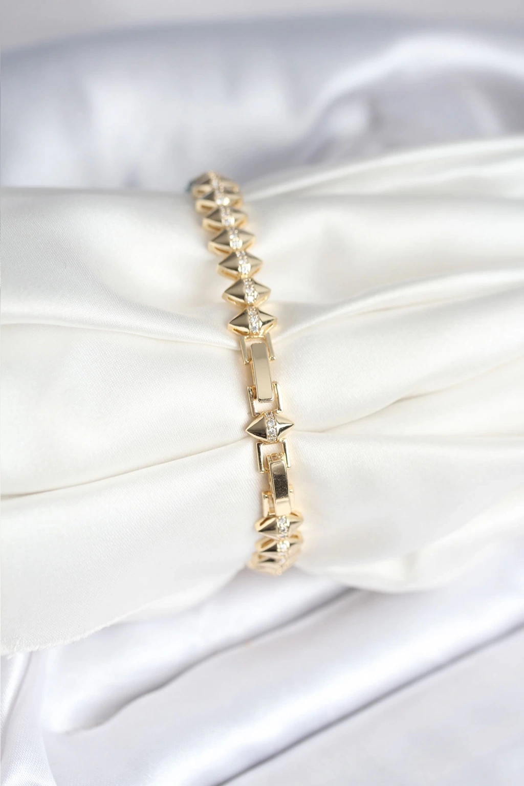 Pirinç Gold Renk Zirkon Taşlı Baklava Model Kadın Bileklik - TJ-BB8024