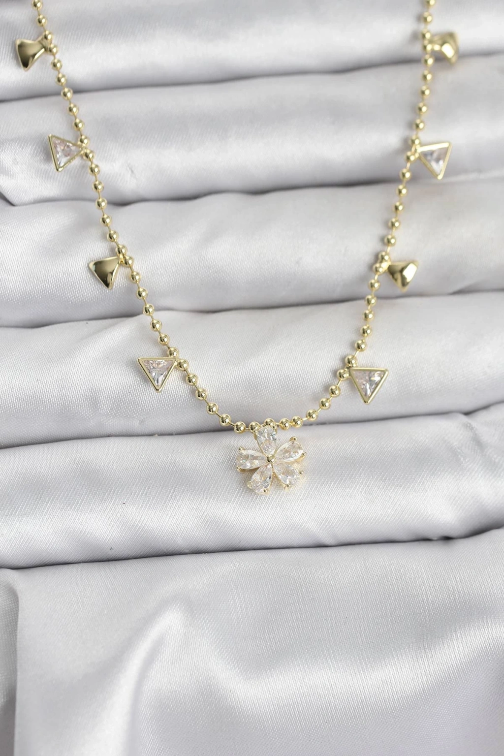Pirinç Gold Renk Zirkon Taşlı Çiçek Model Kadın Kolye - TJ-BKO10642