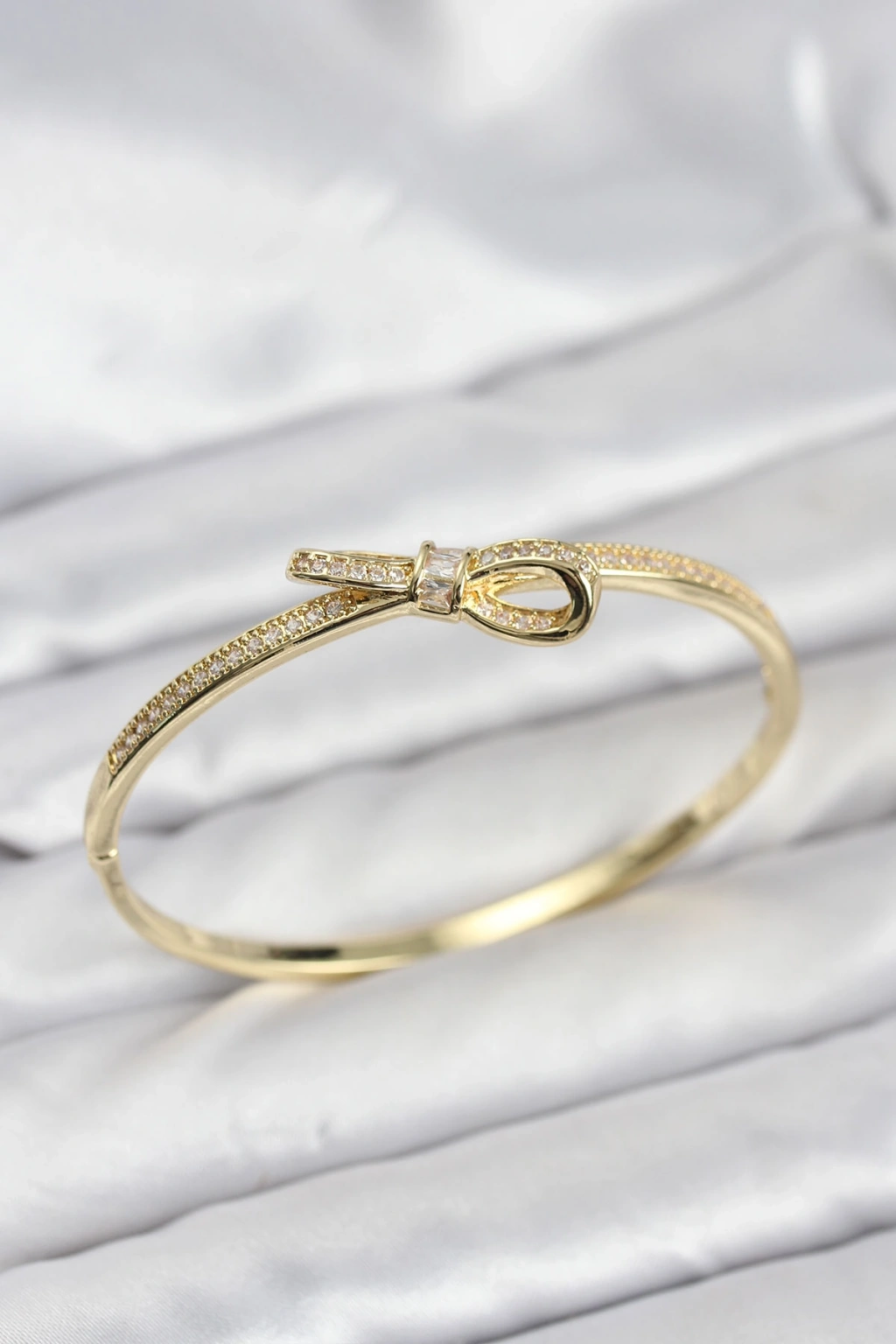 Pirinç Gold Renk Zirkon Taşlı Fiyonk Model Kadın Kelepçe Bileklik - TJ-BB8224