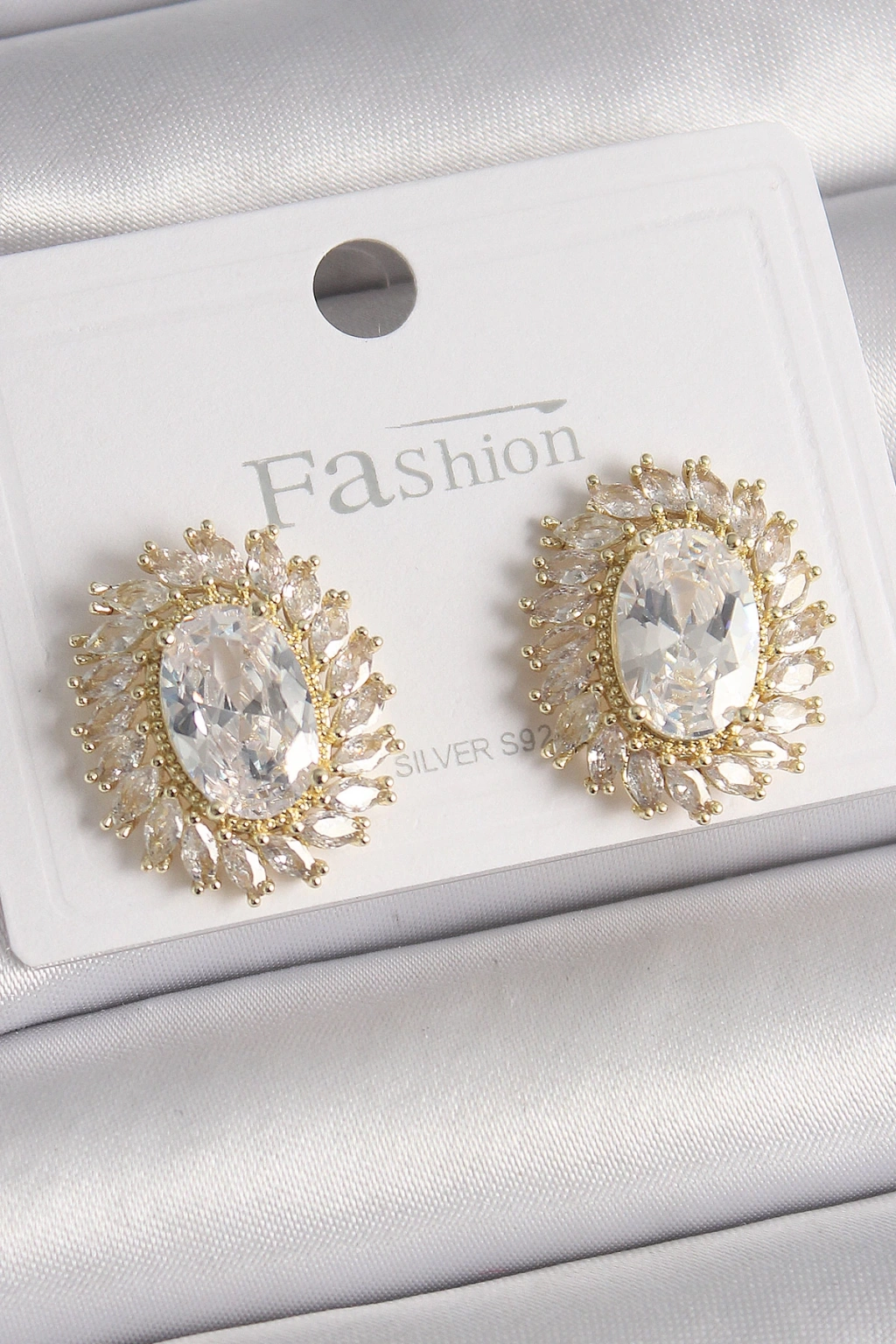 Pirinç Gold Renk Zirkon Taşlı Kadın Küpe - TJ-BKP9925