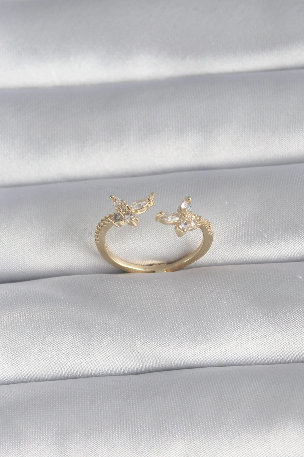 Pirinç Gold Renk Zirkon Taşlı Kelebek Model Kadın Yüzük - TJ-BYK3008