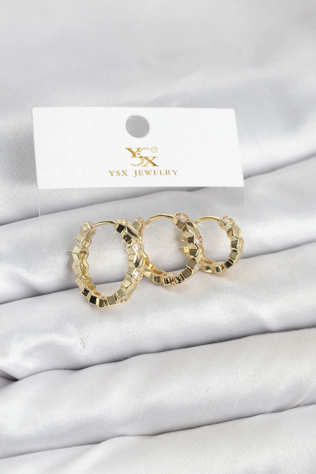 Pirinç Gold Renk Zirkon Taşlı Petek Halka Model YSX Trio Küpe Seti - TJ-BKP11566