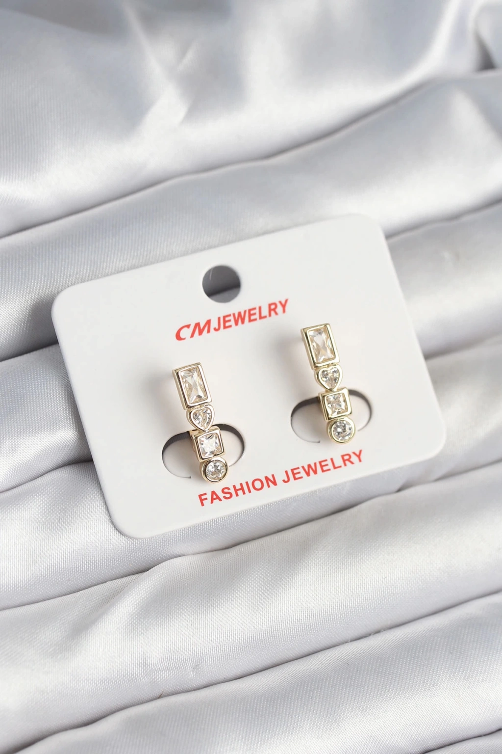Pirinç Gold Renk Zirkon Taşlı Vintage Kadın Küpe - TJ-BKP11247