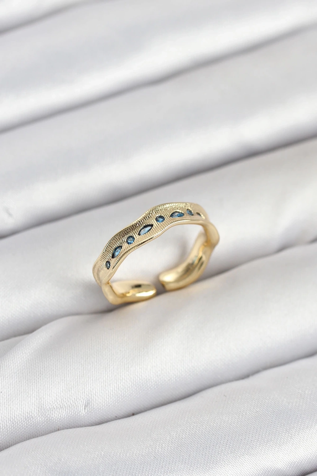Pirinç Gold Renk Zirkon Taşlı Vintage Kadın Yüzük - TJ-BYK3862