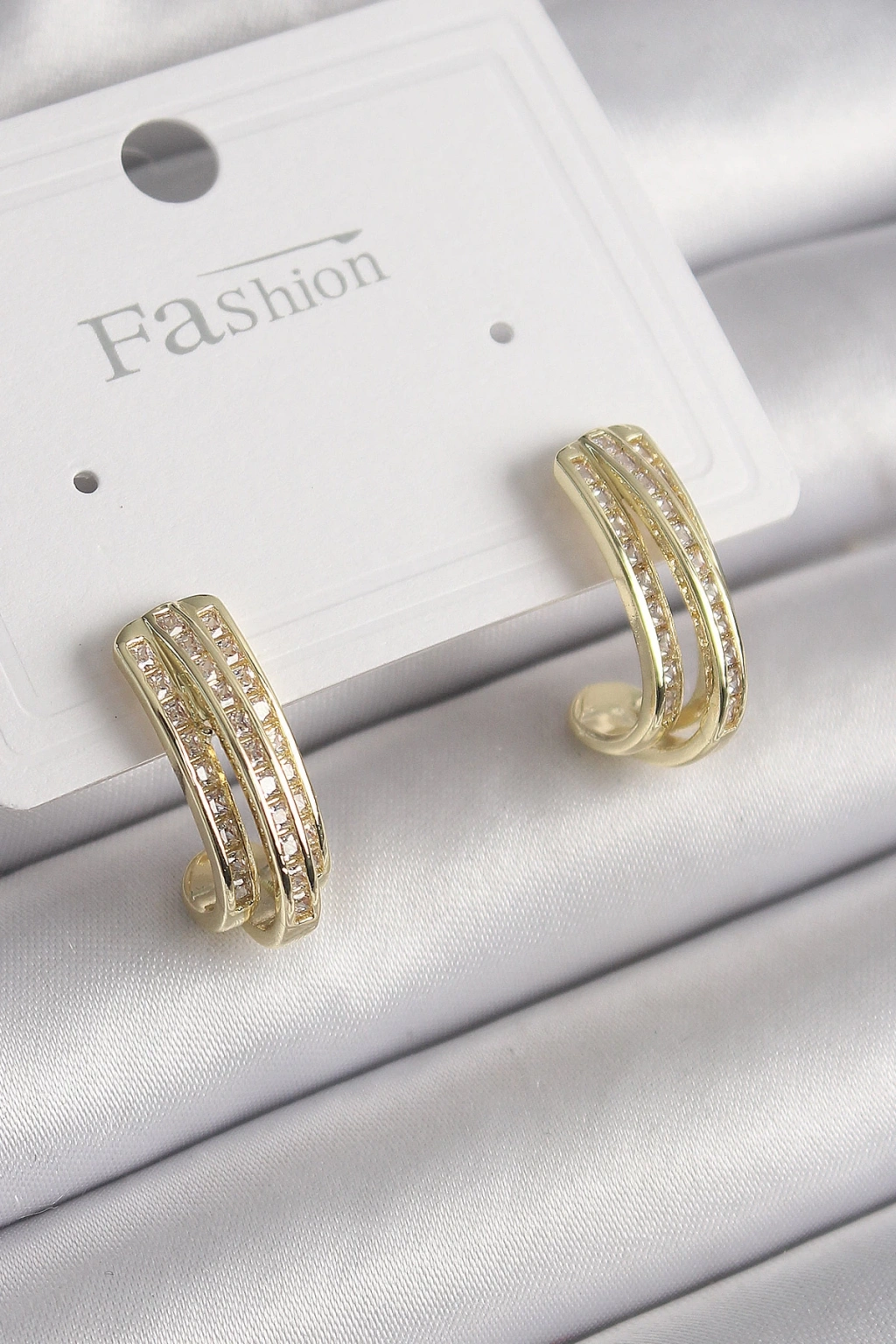 Pirinç Gold Renk Zirkon Taşlı Yarım Halka Model Kadın Küpe - TJ-BKP9977