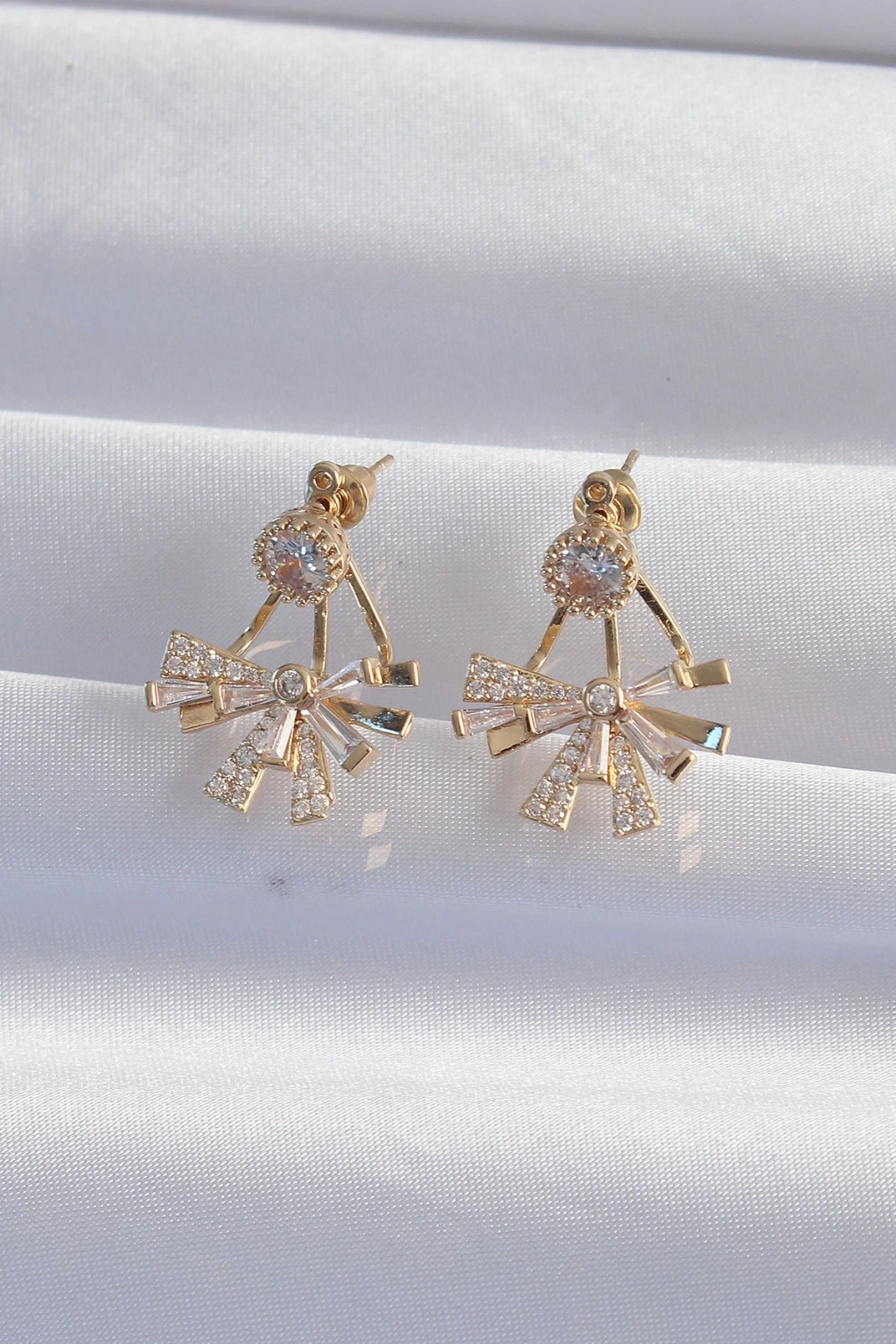 Pirinç Gold Renk Zirkon Taşlı Yassı Fiyonk Model Küpe - TJ-BKP9301