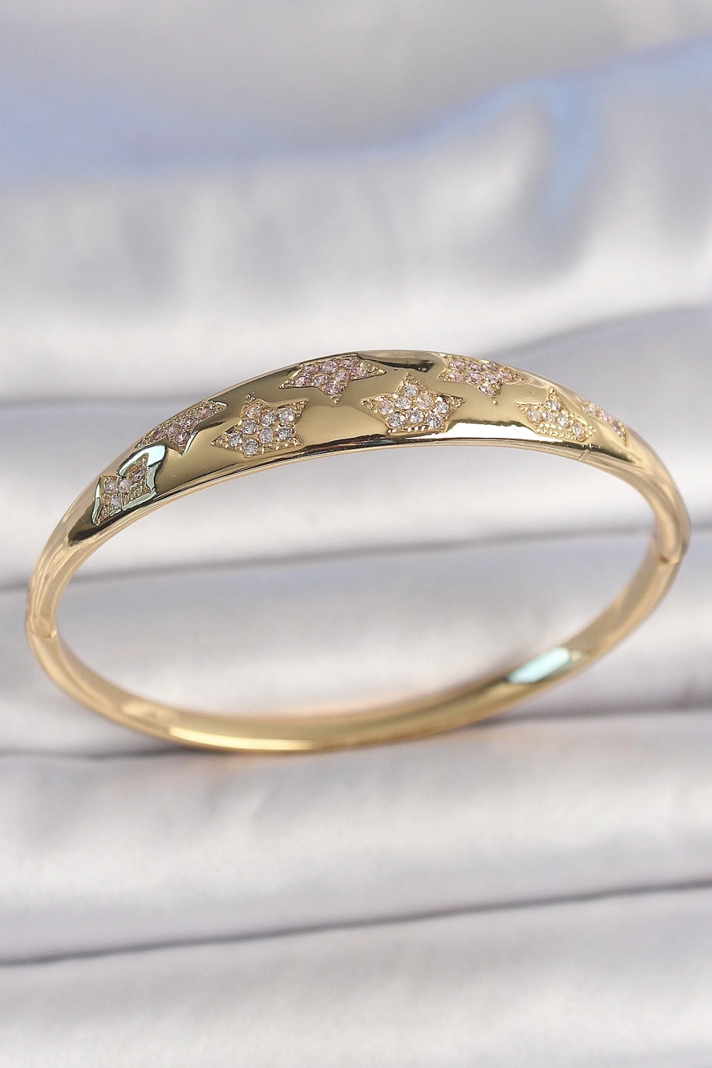 Pirinç Gold Renk Zirkon Taşlı Yıldız İşlemeli Kadın Kelepçe - TJ-BB6918