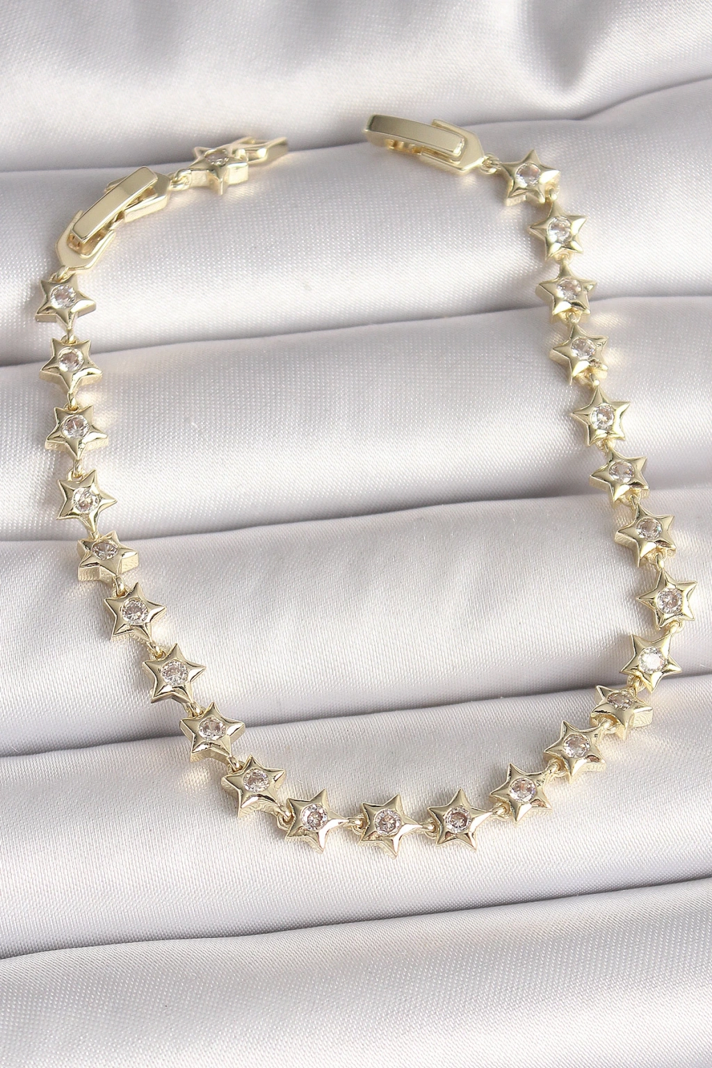 Pirinç Gold Renk Zirkon Taşlı Yıldız Model VIP Seri Kadın Bileklik - TJ-BB6880