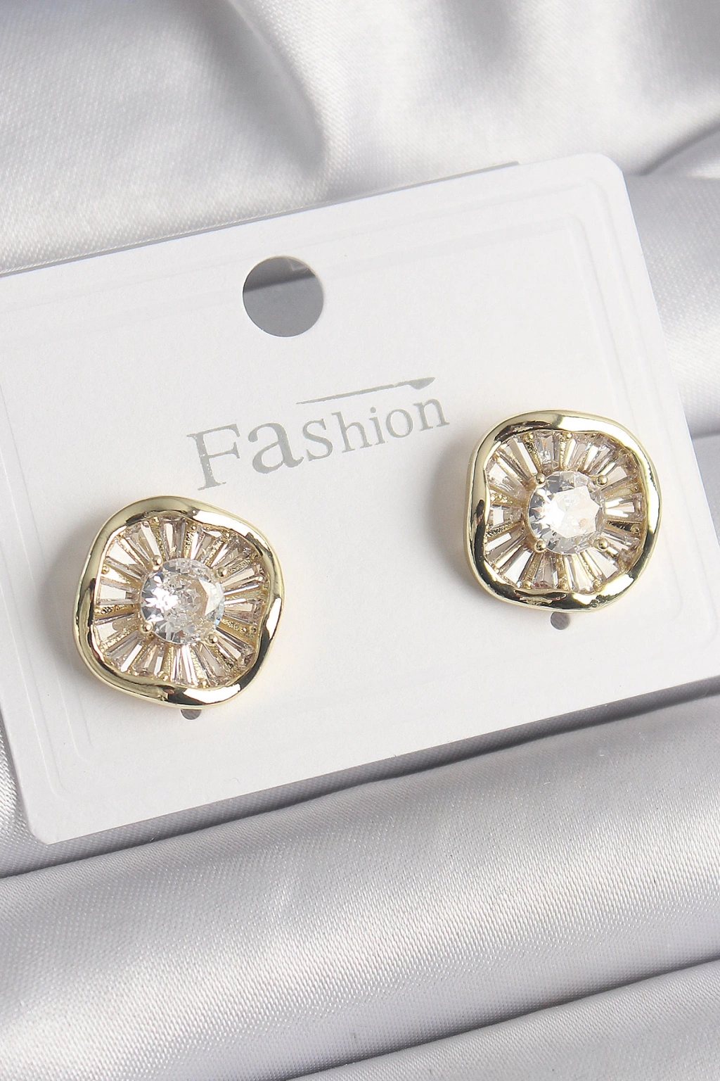 Pirinç Gold Renk Zirkon Taşlı Yonca Model Kadın Küpe - TJ-BKP9850