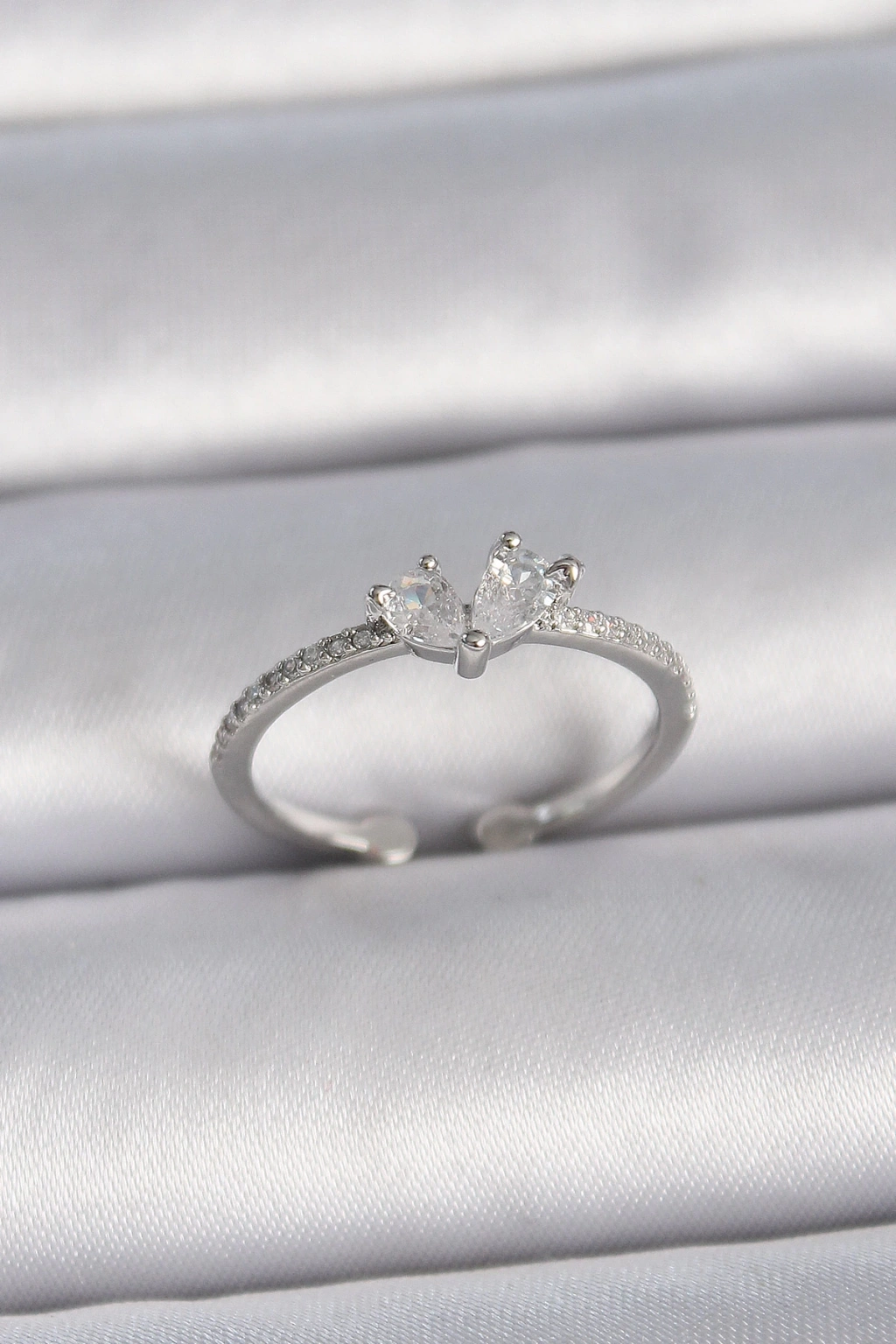 Pirinç Gümüş Renk Ayaralanabilir Zirkon Taşlı Kalp Model Kadın Yüzük - TJ-BYK3407
