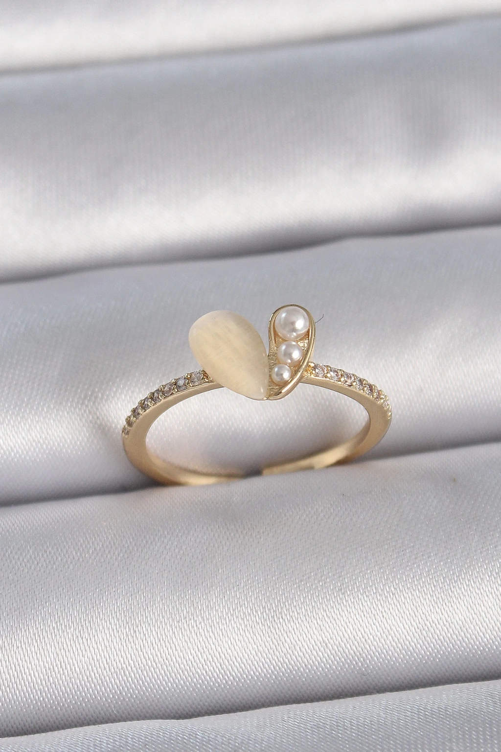 Pirinç Gümüş Renk Ayarlanabilir Zirkon Taşlı Beyaz Mineli Kalp Model Kadın Yüzük - TJ-BYK3376