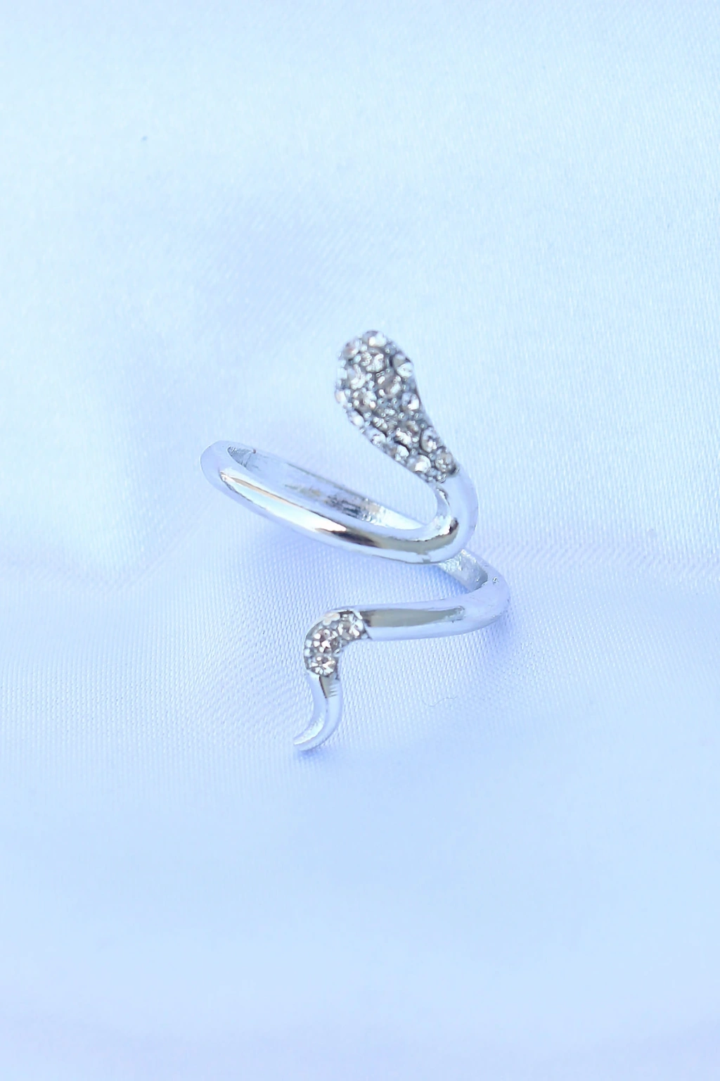 Pirinç Gümüş Renk Ayarlanabilir Zirkon Taşlı Yılan Yüzük - TJ-BYK3187