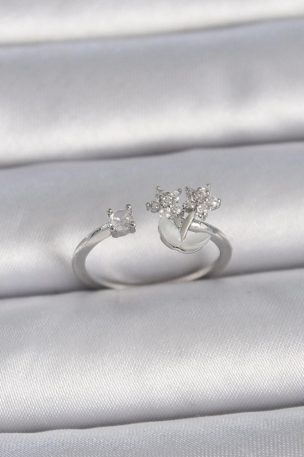 Pirinç Gümüş Renk Ayarlanabilir Zirkon Taşlı Yıldız Model Kadın Yüzük - TJ-BYK3397