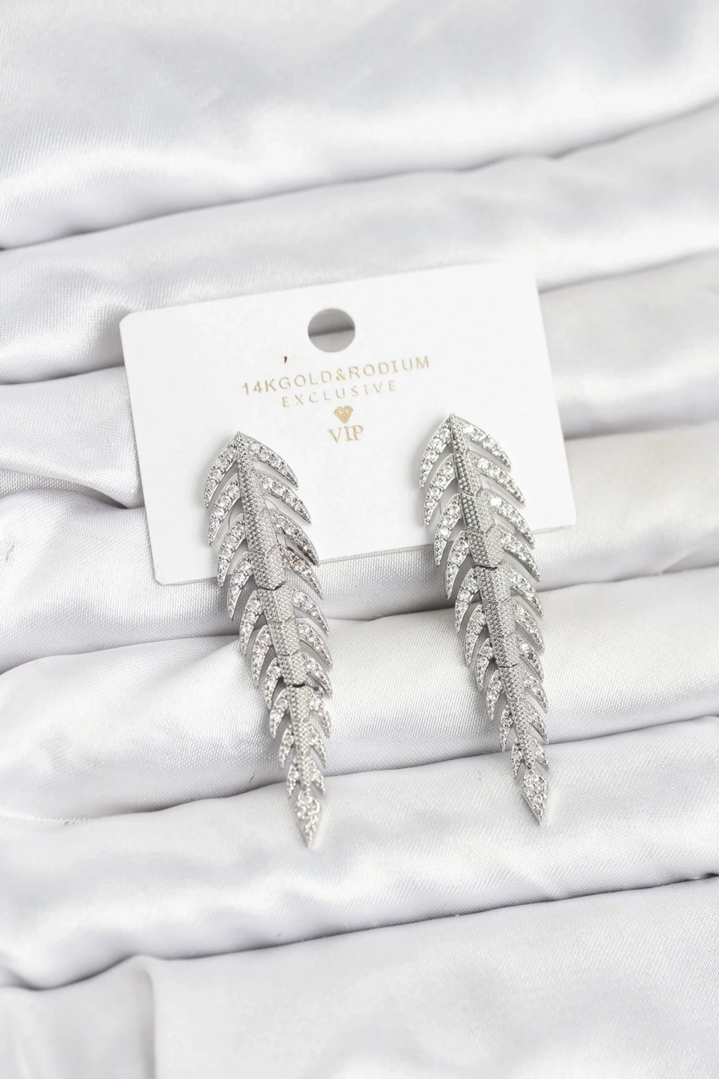 Pirinç Gümüş Renk Balık Sırtı Model Zirkon Taşlı Kadın Küpe - TJ-BKP11517