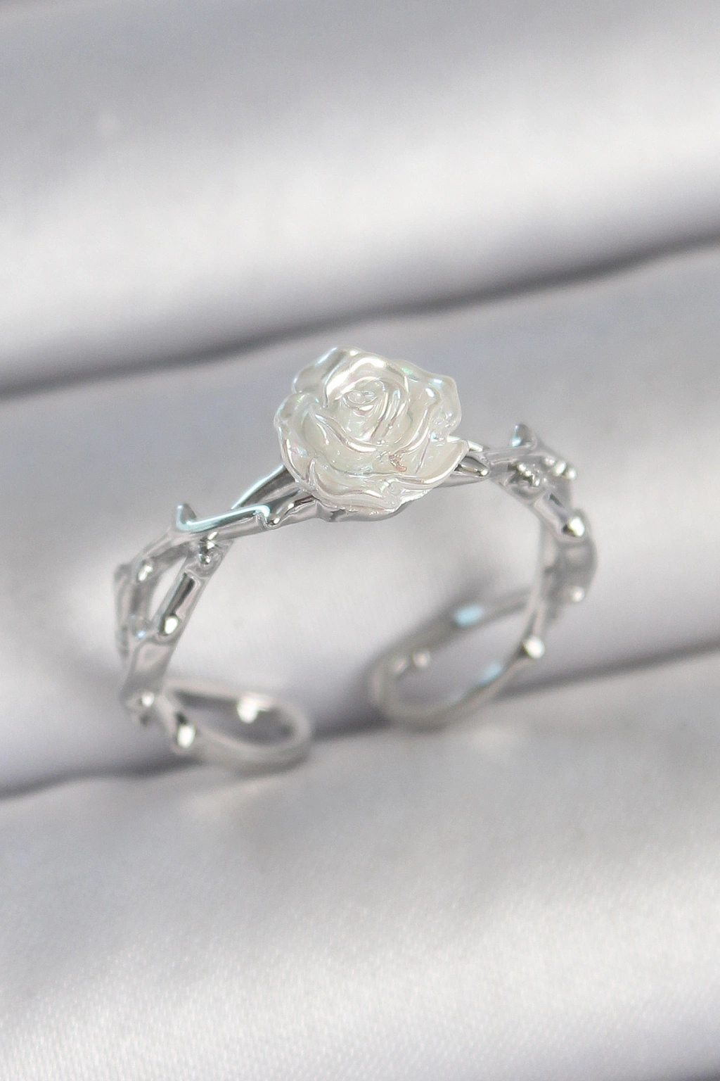 Pirinç Gümüş Renk Beyaz Gül Model Ayarlanabilir Kadın Yüzük - TJ-BYK3730