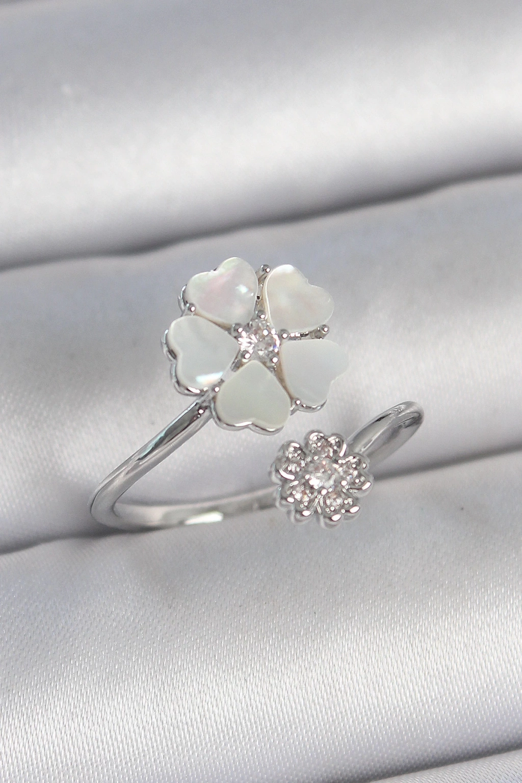 Pirinç Gümüş Renk Beyaz Mineli Çiçek Model Zirkon Taş Detay Kadın Yüzük - TJ-BYK3712