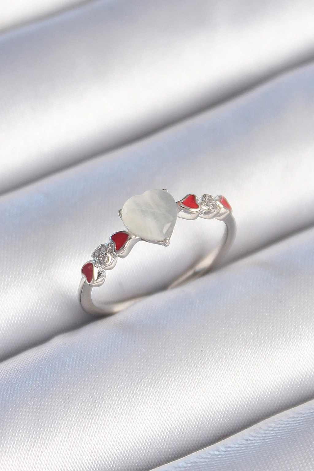 Pirinç Gümüş Renk Beyaz Mineli Kalp Model Zirkon Taş Detaylı Kadın Yüzük - TJ-BYK3459