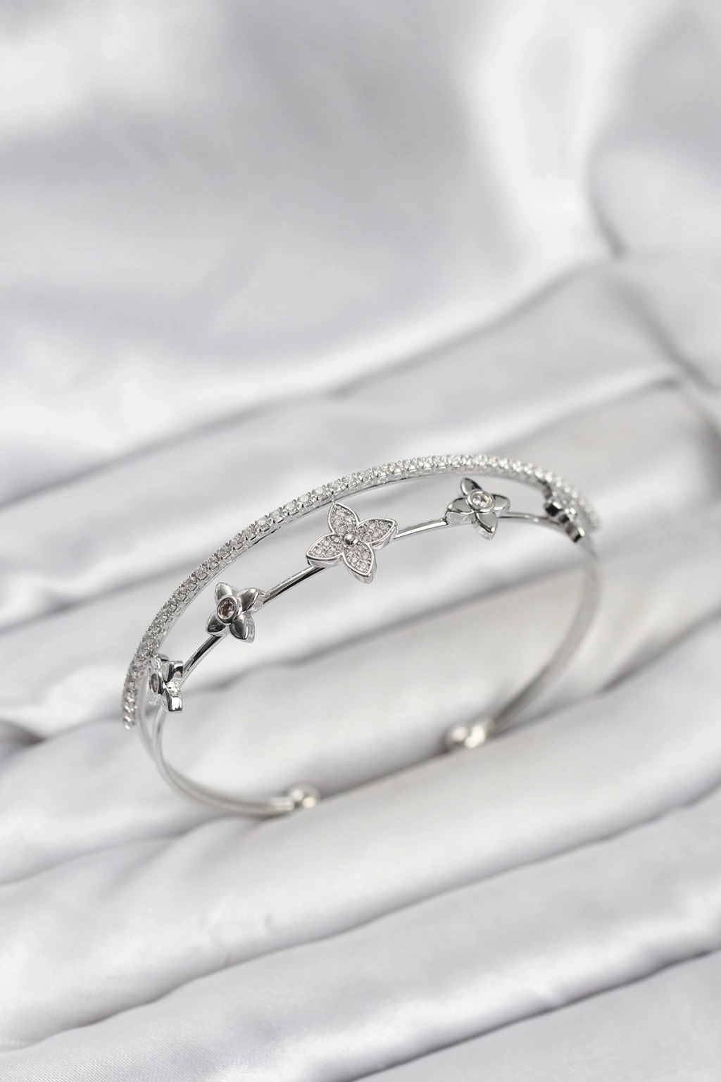 Pirinç Gümüş Renk Çiçek Model Kadın Bileklik - TJ-BB8254