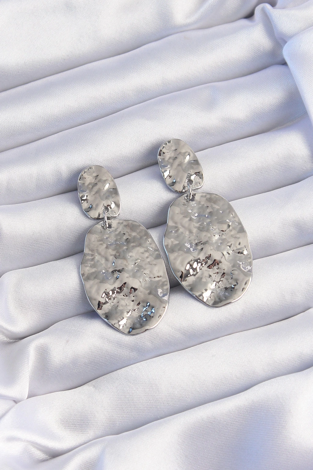 Pirinç Gümüş Renk Ezme Plaka Küpe - TJ-BKP9242
