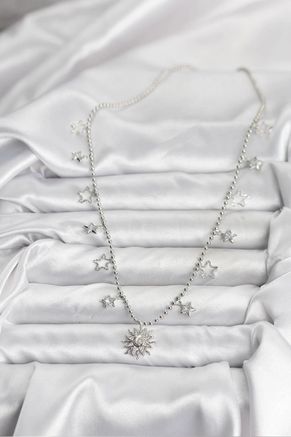 Pirinç Gümüş Renk Güneş Model Kadın Kolye - TJ-BKO10655