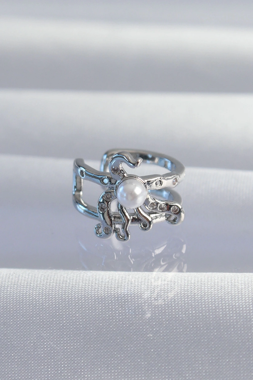 Pirinç Gümüş Renk İncili Ahtapot Earcuff Küpe - TJ-BKP9332