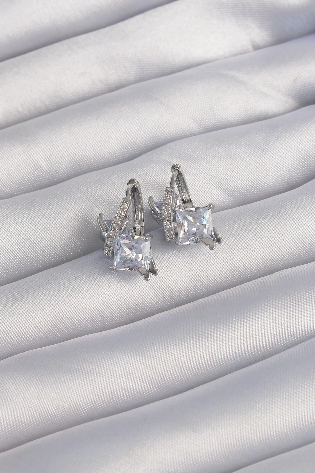 Pirinç Gümüş Renk İri Zirkon Taşlı Kıvrımlı Minimal Kelebekli Halka Küpe - TJ-BKP9288