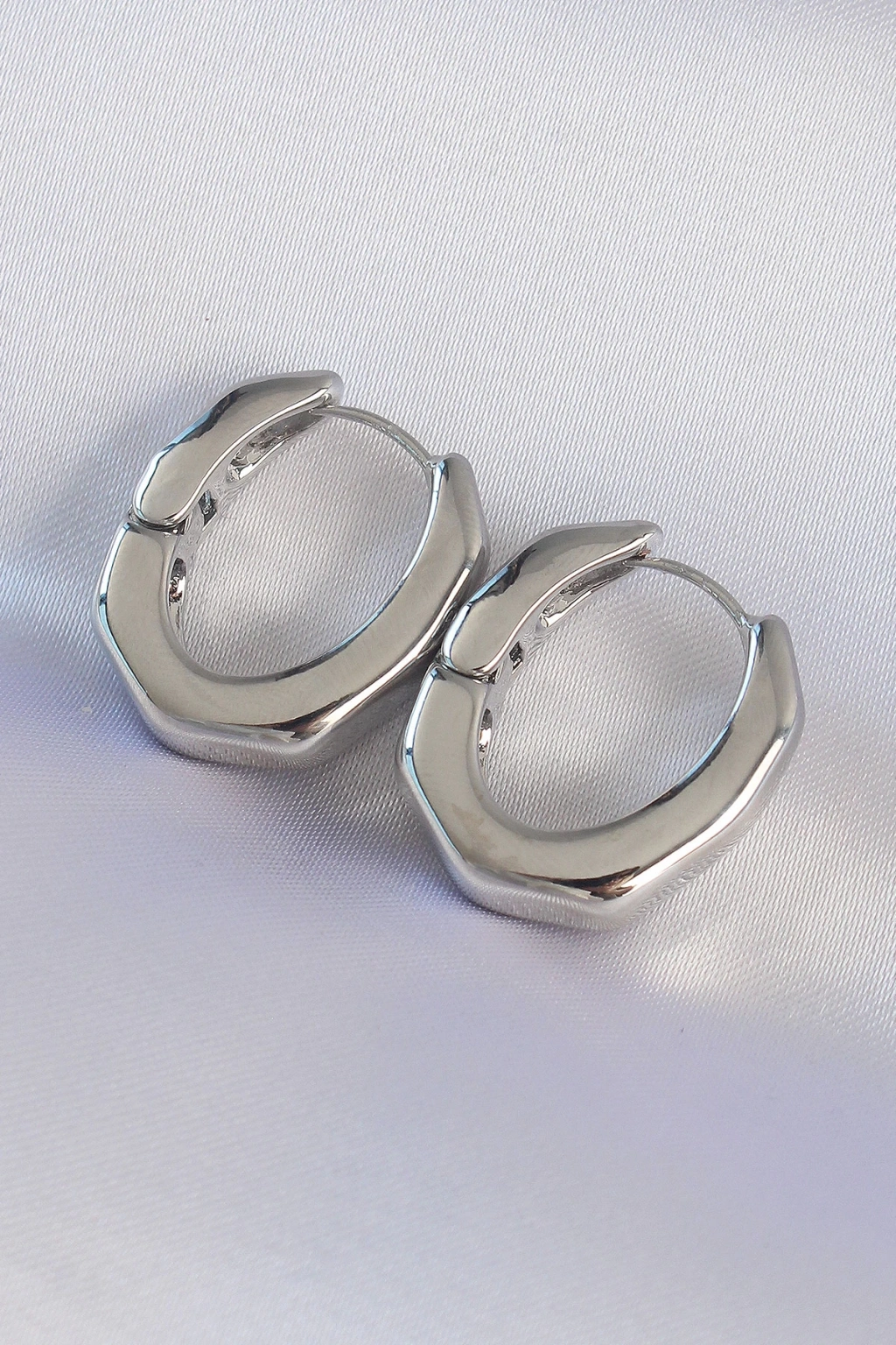 Pirinç Gümüş Renk Kalın Kemik Model Küpe - TJ-BKP8981
