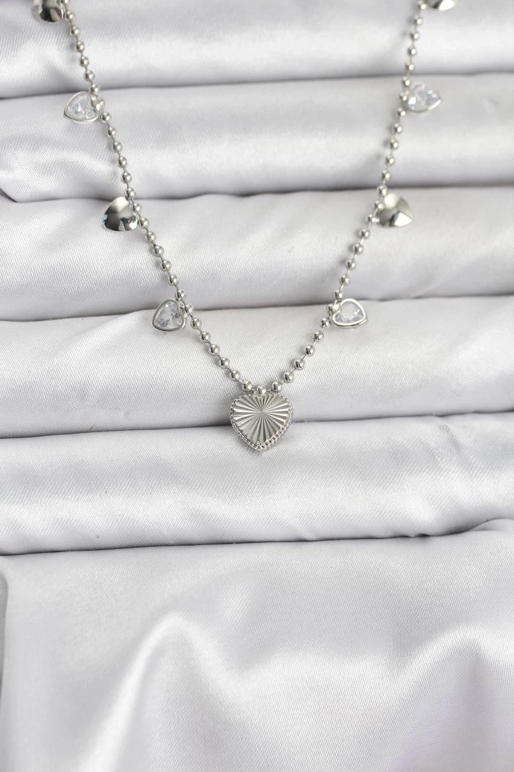 Pirinç Gümüş Renk Kalp Model Kadın Kolye - TJ-BKO10653