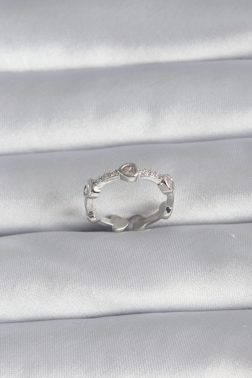 Pirinç Gümüş Renk Kalp Model Zirkon Taş Detay Kadın Yüzük - TJ-BYK3005