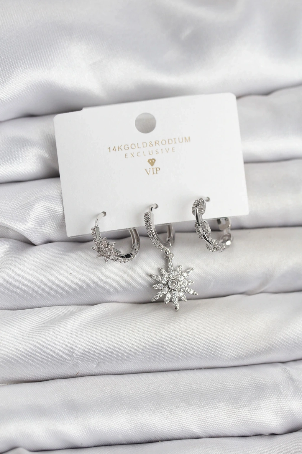 Pirinç Gümüş Renk Kutup Yıldızı Model 3'lü Kadın Küpe Seti - TJ-BKP11448