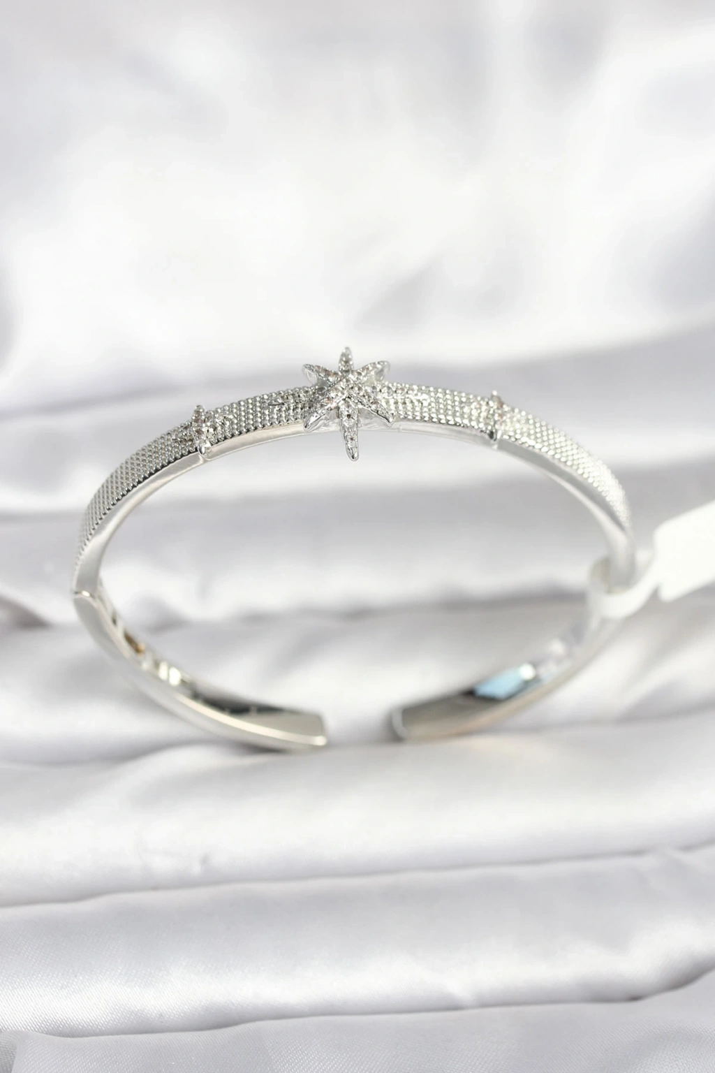 Pirinç Gümüş Renk Kutup Yıldızı Model Kadın Kelepçe Bileklik - TJ-BB8092