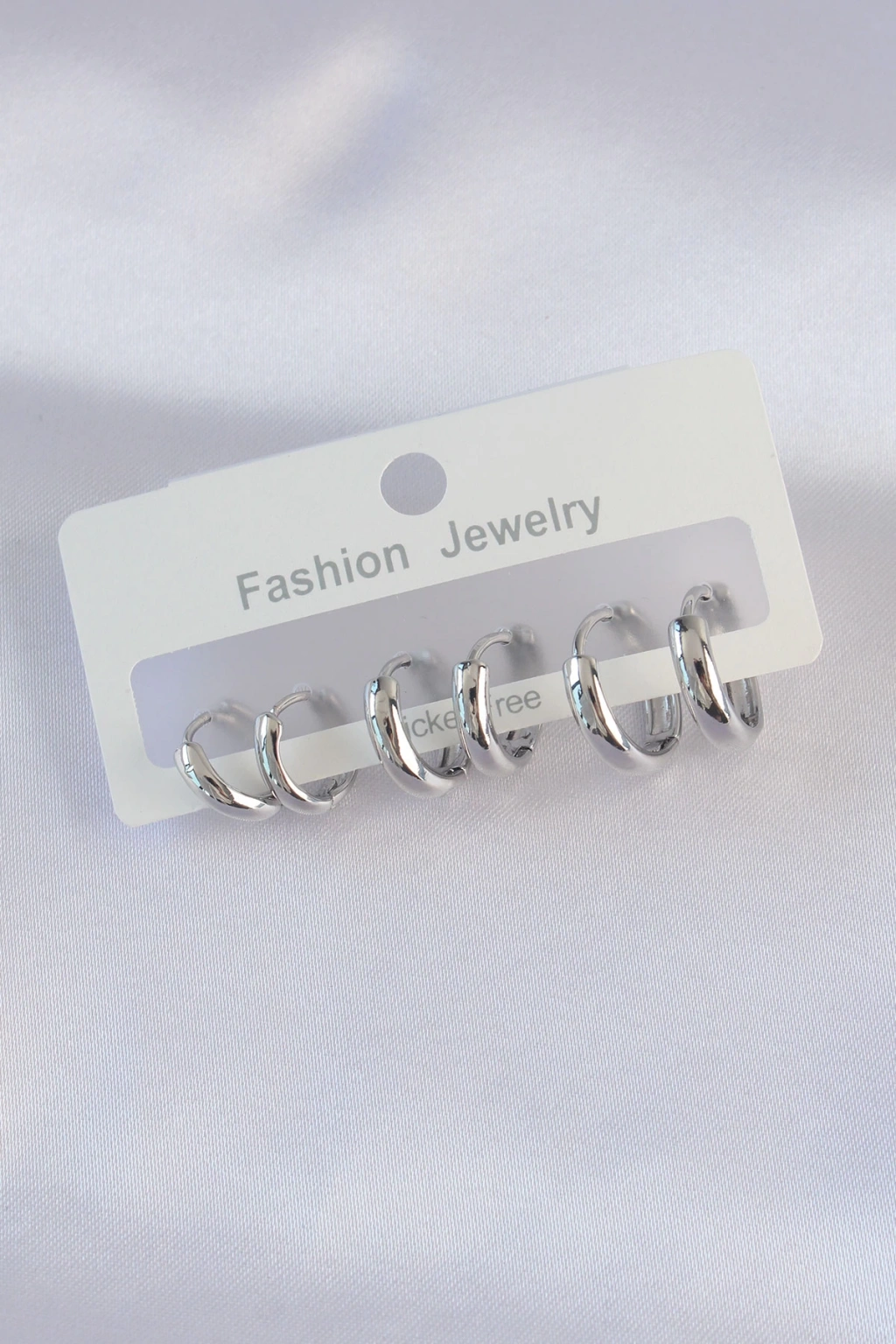 Pirinç Gümüş Renk Oval Bombeli Küpe Seti - TJ-BKP8997