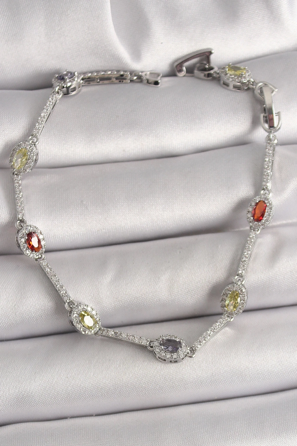 Pirinç Gümüş Renk Renkli Zirkon Taşlı Damla Taş Model Kadın Bileklik - TJ-BB6873