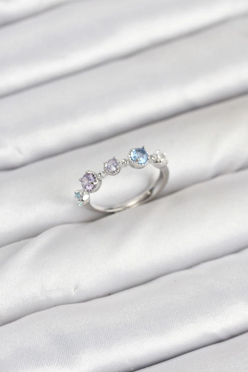 Pirinç Gümüş Renk Renkli Zirkon Taşlı Kadın Yüzük - TJ-BYK3867