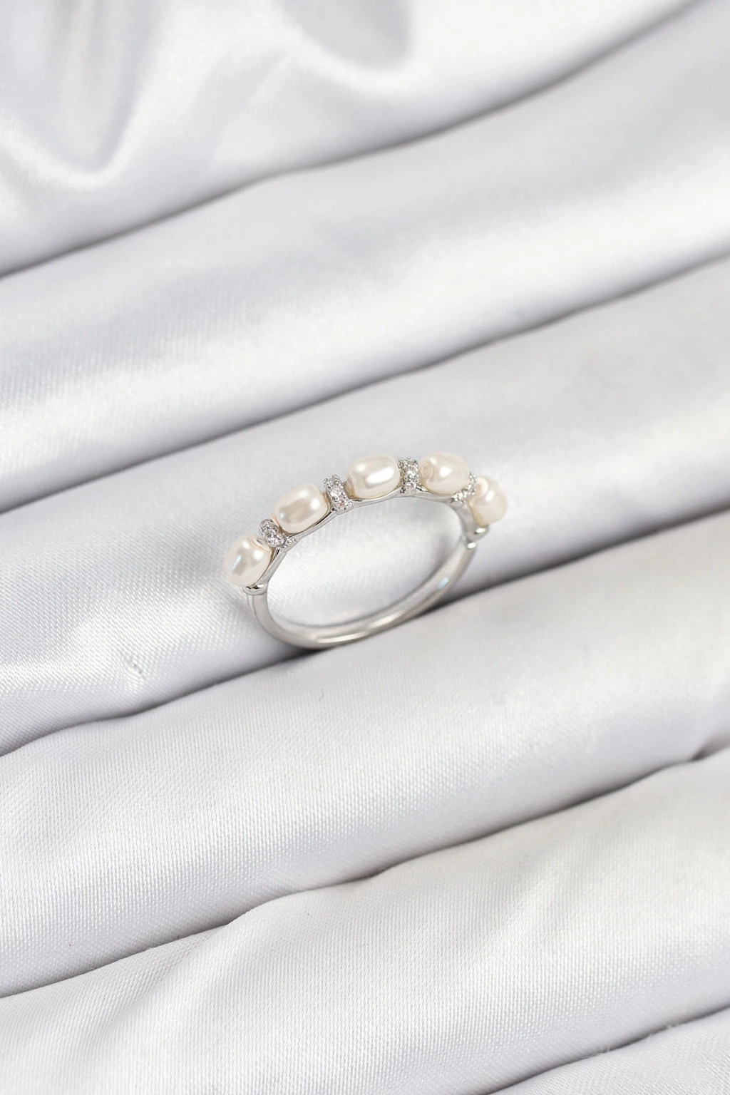 Pirinç Gümüş Renk Sıralı İncili Kadın Yüzük - TJ-BYK3845