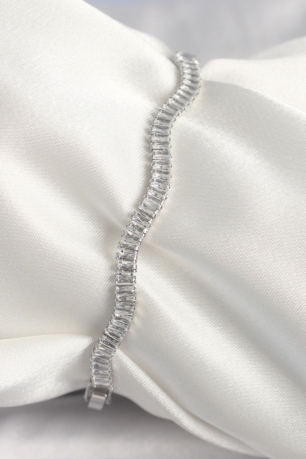 Pirinç Gümüş Renk Su Yolu Zirkon Taşlı Model Kadın Bileklik - TJ-BB6925
