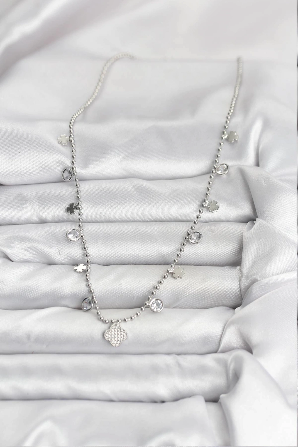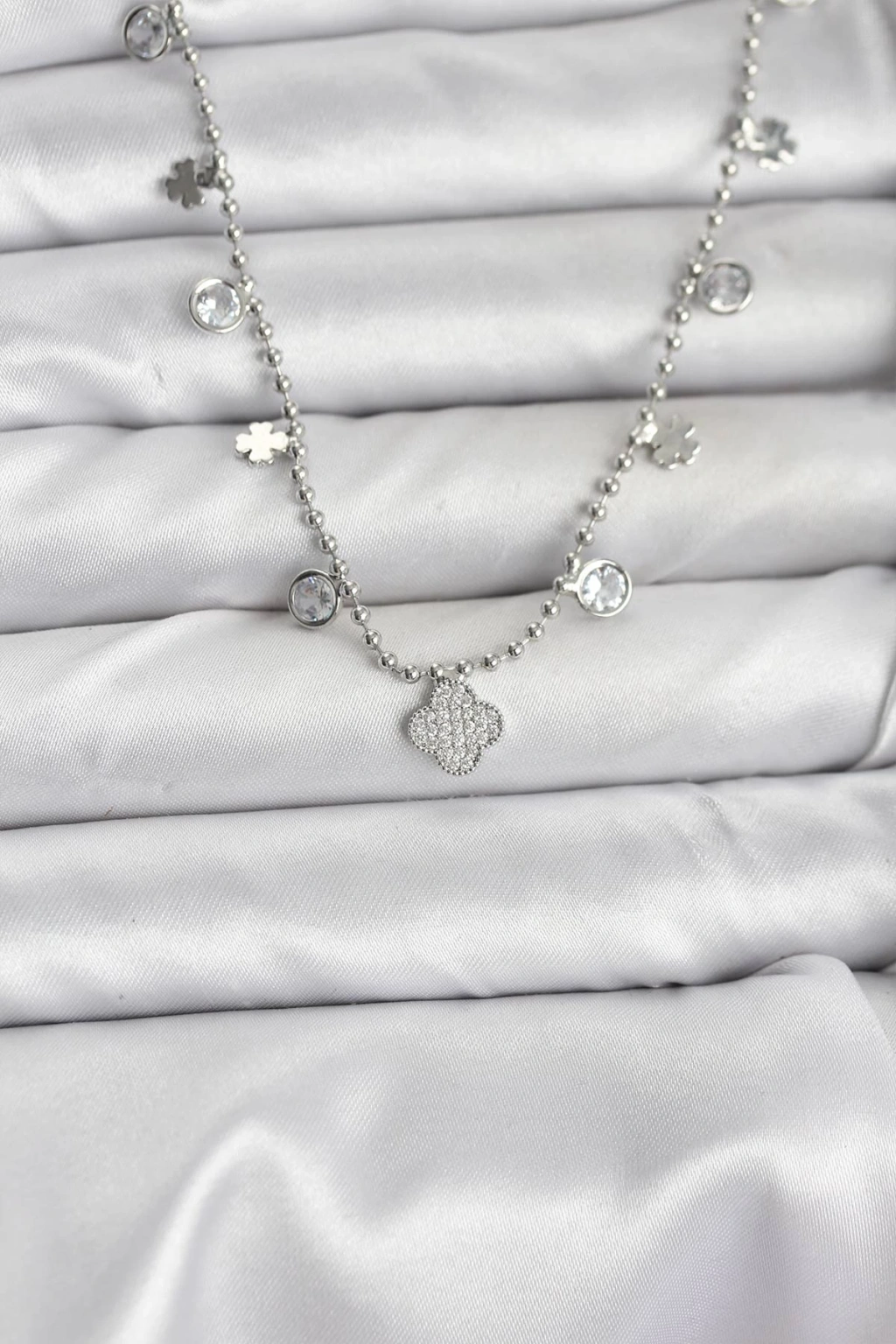 Pirinç Gümüş Renk Yonca Model Kadın Kolye - TJ-BKO10651